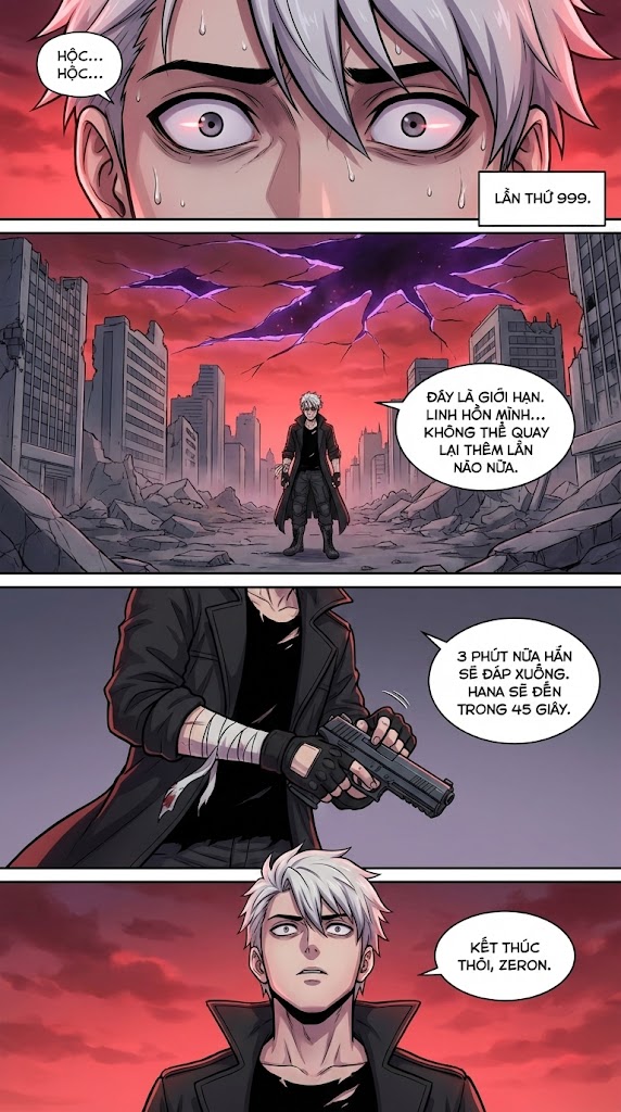 Thế giới bị xâm lăng bởi Hư Không (The Void). Kaito sở hữu năng lực 'Reboot' (Khởi Động Lại), cho phép cậu quay ngược thời gian mỗi khi chết. Tuy nhiên, trên cổ tay cậu có một bộ đếm ngược khắc vào da thịt: hiện tại là số 999. Đây là lần cuối cùng. Nếu chết lần này, sự tồn tại của cậu sẽ bị xóa bỏ hoàn toàn. Không còn đường lui, Kaito không còn chọn cách chiến đấu an toàn như 998 lần trước. Cậu quyết định đánh đổi tuổi thọ của lần sống này để kích hoạt 'Overload' - một trạng thái sức mạnh điên cuồng phá vỡ mọi quy tắc vật lý, tập hợp những đồng minh mạnh nhất từ các dòng thời gian cũ để tổng tấn công vào pháo đài bay của Hư Không Vương.